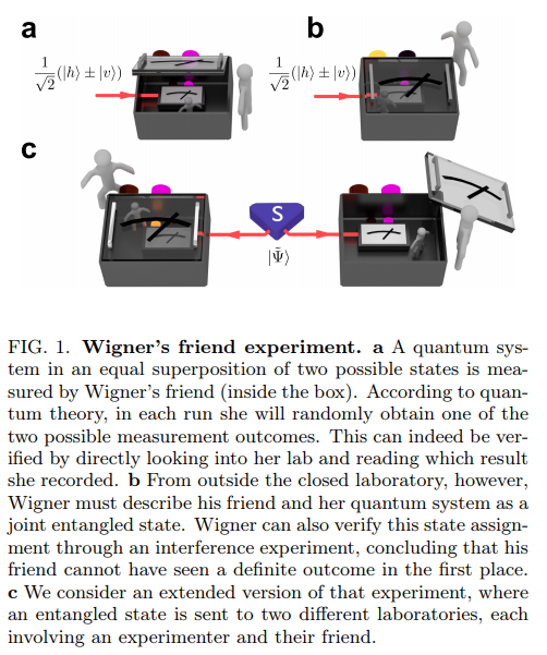 From the abstract “In a state-of-the-art 6-photon experiment, we here realise this extended Wigner’s friend scenario, experimentally violating the associated Bell-type inequality by 5 standard deviations. This result lends considerable strength to interpretations of quantum theory already set in an observer-dependent framework and demands for revision of those which are not.” The last sentence says the observer is part of the quantum system. So the naive Copenhagen interpretation of wave collapse is no good. This paper won’t change any minds. But to me is another small push towards many worlds being reasonable. Your mileage may vary. link to paper