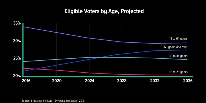 Since we’re doing voter surveys. Maybe part of this is the demographics of age. See below. If age is the driver, things will get worse. From America’s Defining Divide Isn’t Left vs. Right. It’s Old vs. Young.